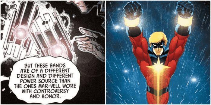 这些乐队被分类为欧米茄级武器,由Marvel上尉,Rick Jones,Photon,Martyr,Khn'nr,Marvel Boy和Star-Lord佩戴。在整个宇宙中,只有四套已知的Nega-Bands存在。