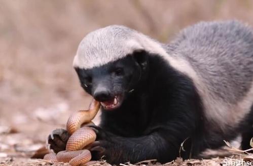 抓起蛇就像吃辣条一样迅速吃完,毒性仅次于银环蛇的黑曼巴蛇蛇毒,在蜜獾看来成了“二锅头”般的存在。