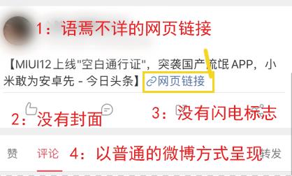 语焉不详的网页链接没有封面用来帮助观众理解内容没有闪电标志看起来就和带链接的普通微博没有区别