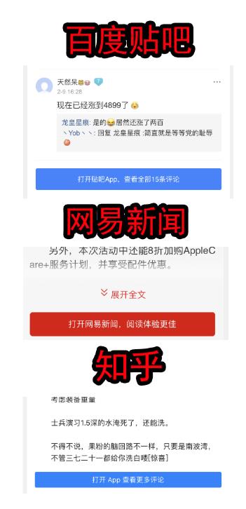 大部分APP阅读全文,仅仅需要打开APP本身就可以做到