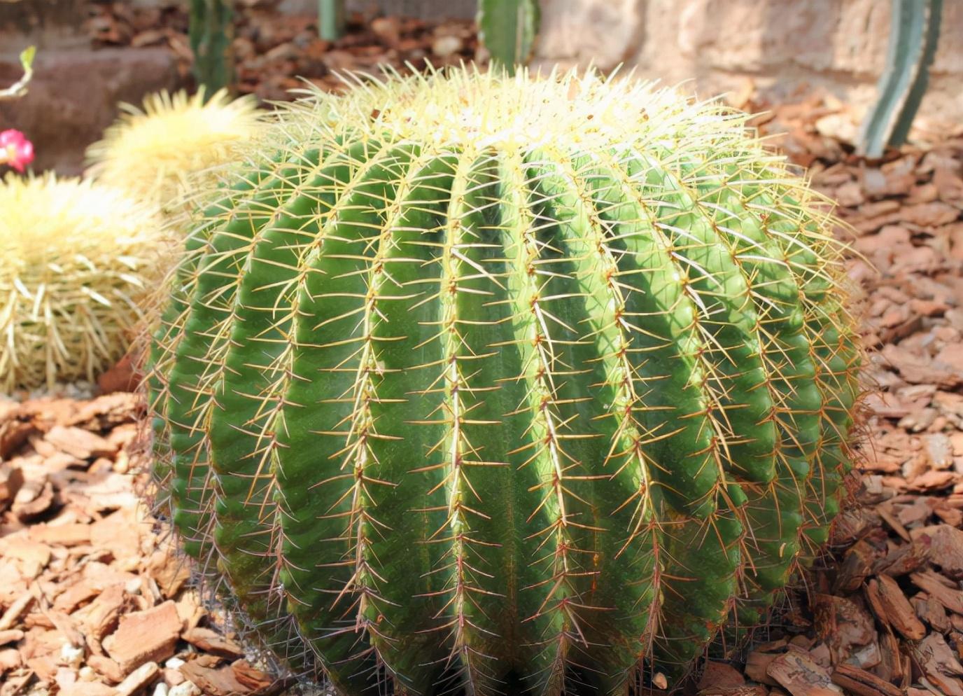 金琥是属于仙人球,它是仙人球当中一个唯一能够长到直径很大的品种,另外还有我们知道的强刺球属的巨鹫玉,他也能够长得很大,但是他长大了以后会呈柱状,所以金琥是一个唯一能够呈圆形生长的大型仙人球。