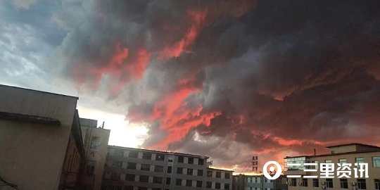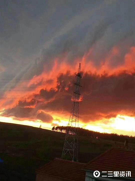震撼!吉林舒兰市吉舒镇天空出现火烧云