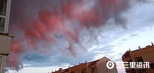 5月26日晚7时左右,在吉林舒兰市吉舒镇天空出现火烧云奇异天象,很多人纷纷拿出手机拍摄。