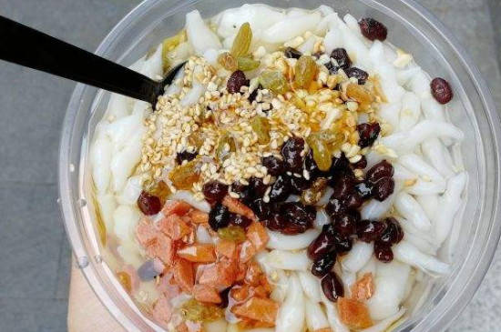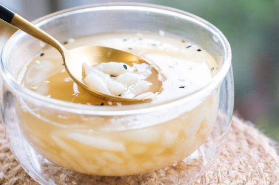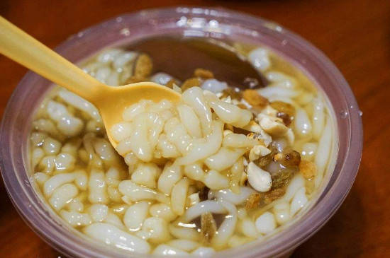 然后放进冰箱冷藏两个小时,食用时,加入红糖水和冰块,这样制作的凉虾更劲道。
