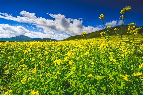 5. 油菜花:春天油菜花成片开放,金黄色的花海中充满了阳光明媚的味道。
