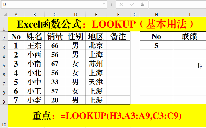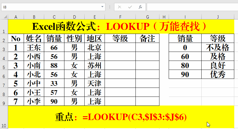 易解语法结构:Lookup(查找的值,查找值所在的范围,返回值所在的范围)。