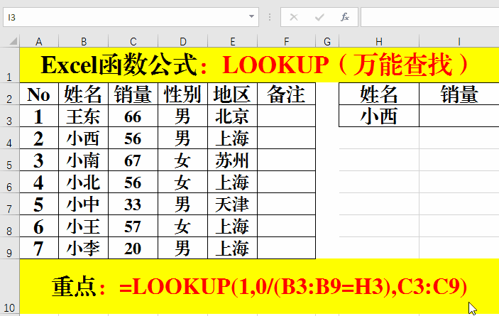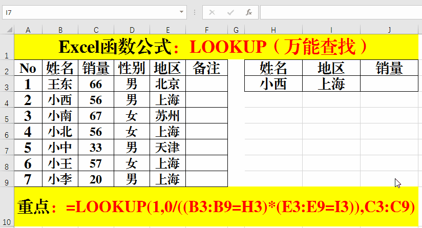 2、从上述的万能公式中我们可以看出,Lookup不仅可以但条件查找,也可以多条件查找。