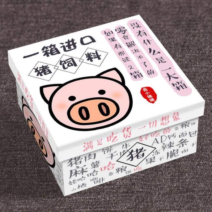 就是这种包装可爱里面塞满零食,上面写着猪饲料盒的零食大礼包,如果有一个吃货小女友,就买这个!