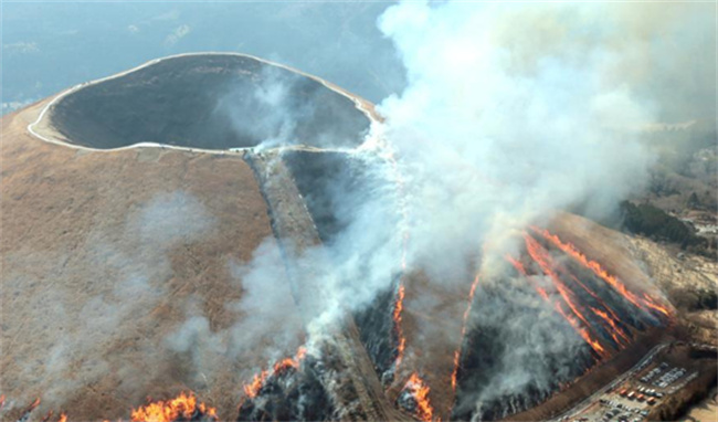 在日本每年的1月,第4个周六就会在若草山放火烧山,举行若草烧山疑是是一种较为特殊的节日,到目前为止已经延续了有着几百年的时间,有人说是18世纪就已经开始的奈良线的342公尺高的山体被整个焚烧掉。据说是为了消灭有害生物驱逐野猪的一种办法,把一些害虫的幼虫虫卵,还有土壤之中的病毒都给烧掉,不用再继续喷洒农药,种出来的粮食就非常的好,对身体有利。