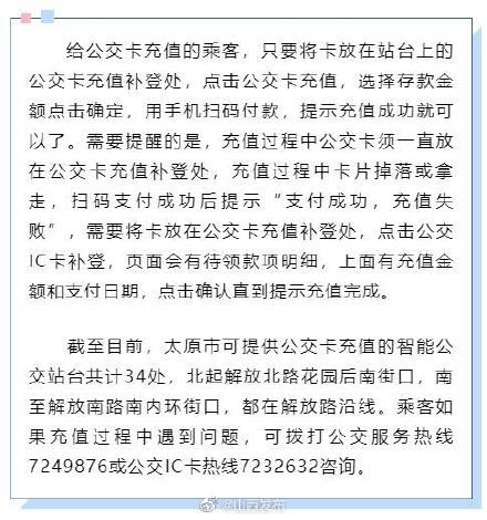 【太原人速看!解放路沿线34处站台可充值公交卡!】6月5日,太原市交通运输局传来消息,太原市新建了34处公交IC卡充值智能公交站台,今后乘客在站台上就能给公交卡充值,充值更加便捷。详情戳图