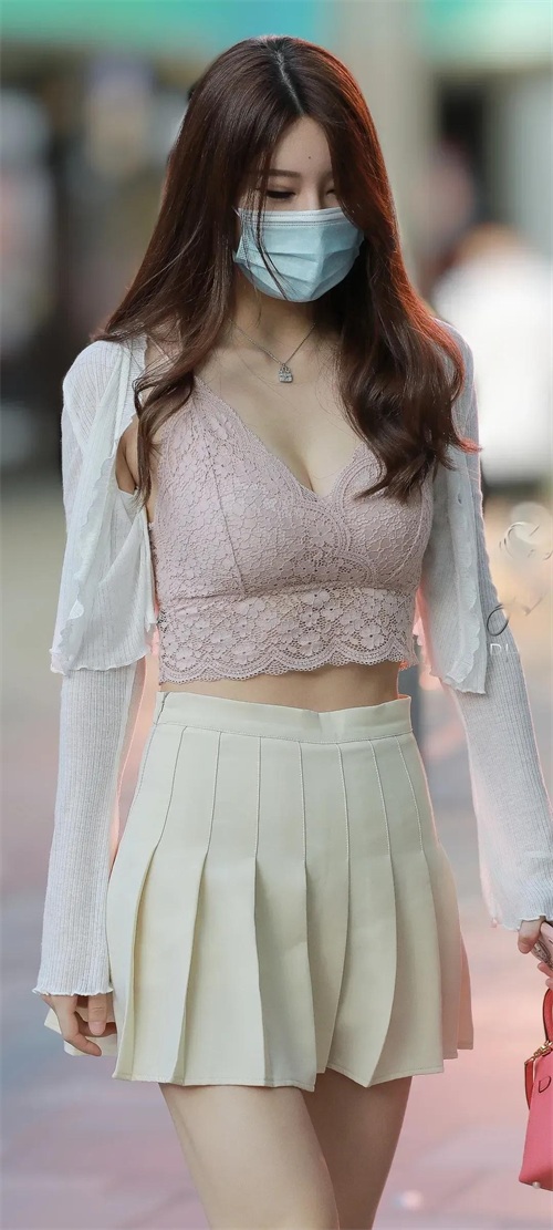 她身着一件粉色蕾丝上衣,那细腻的蕾丝纹理仿佛诉说着浪漫的故事,与她的肤色相得益彰,散发出柔和的光泽。搭配一条白色褶皱短裙,既清新又脱俗,展现出她独特的时尚品味。这样的搭配,既不失女性的柔美,又带着一份干练与利落,让人眼前一亮。