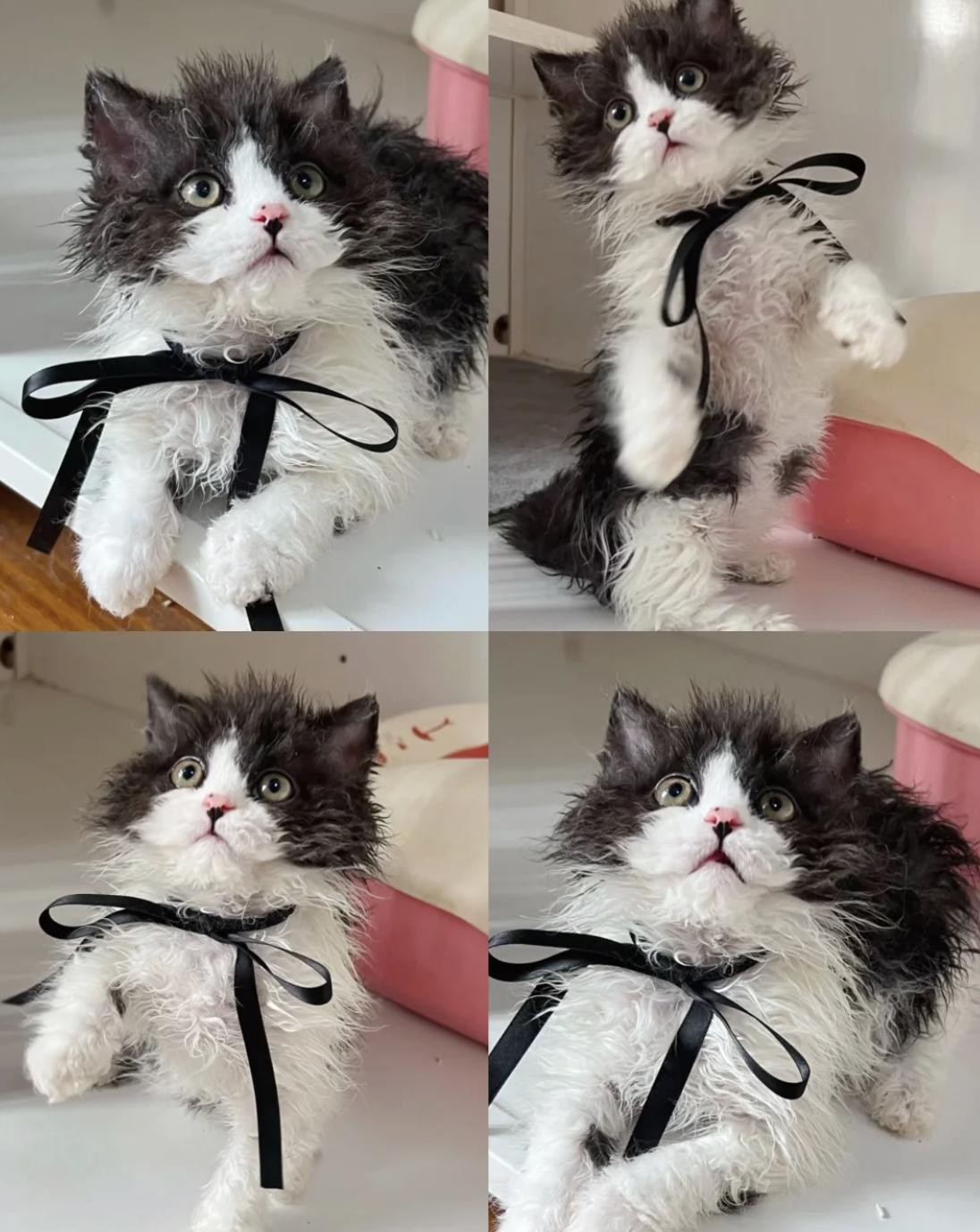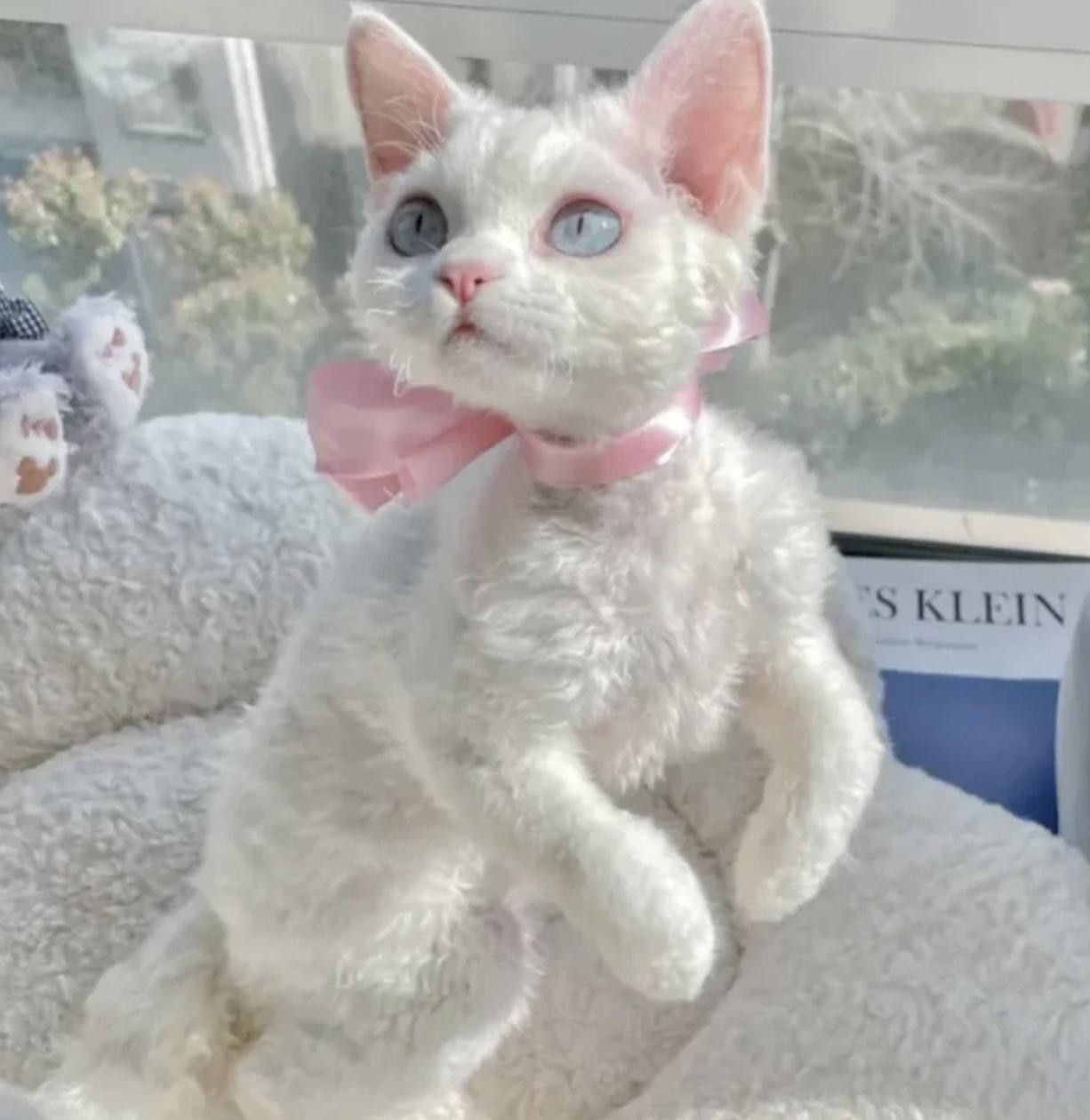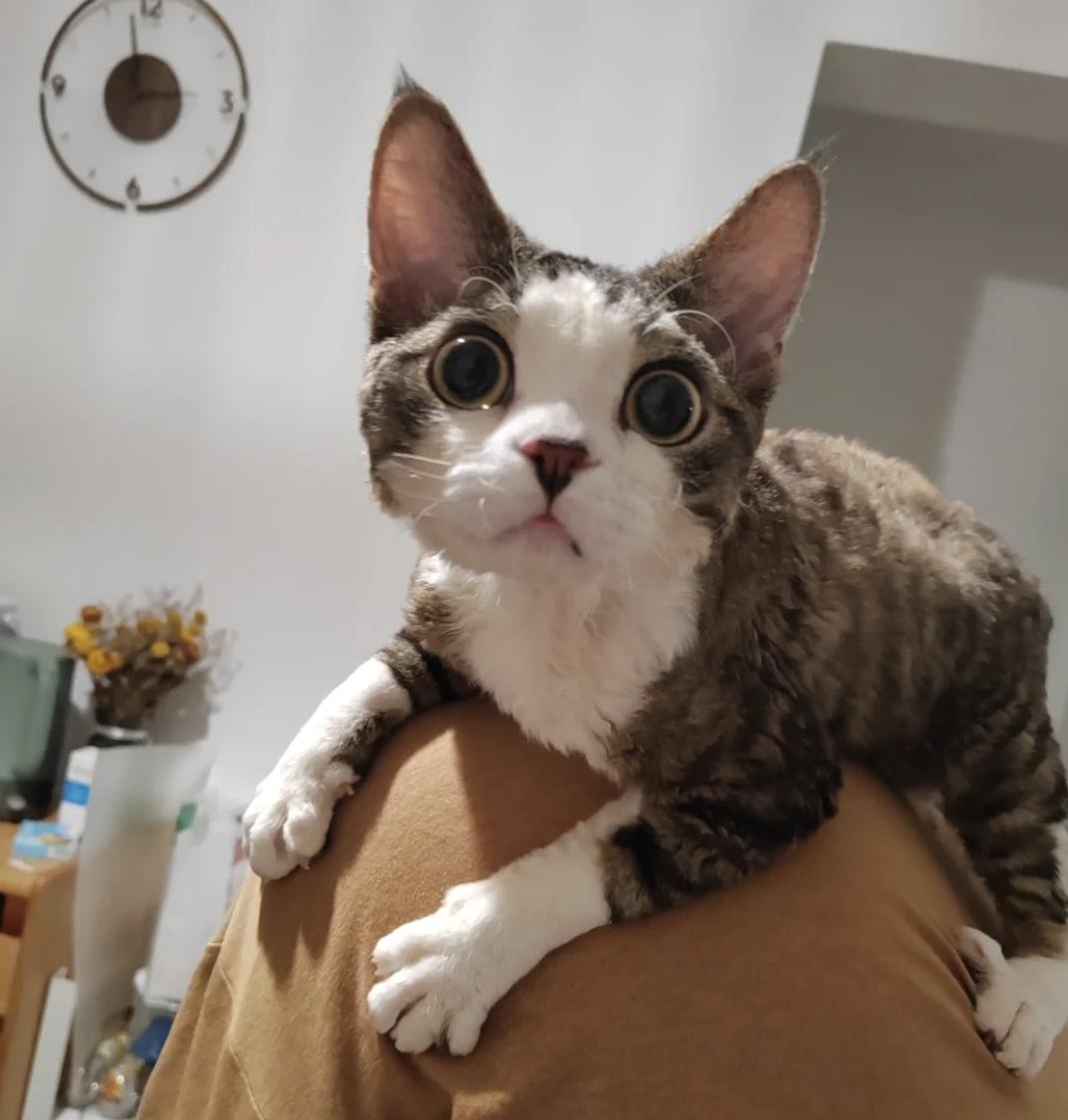 德文卷毛猫跟赛凯有点像,但是他的长相上,颧骨要更加突出,大大的眼睛搭配短短的口套,活脱脱的一个小精灵,再加上粘人的性格,真的一点都抵抗不了!