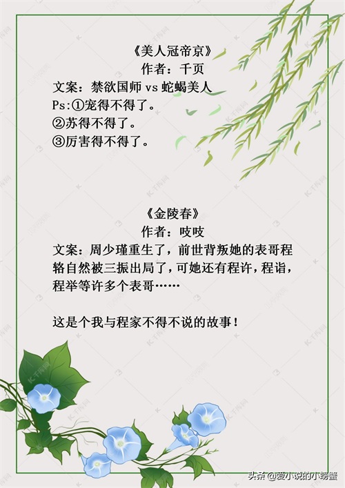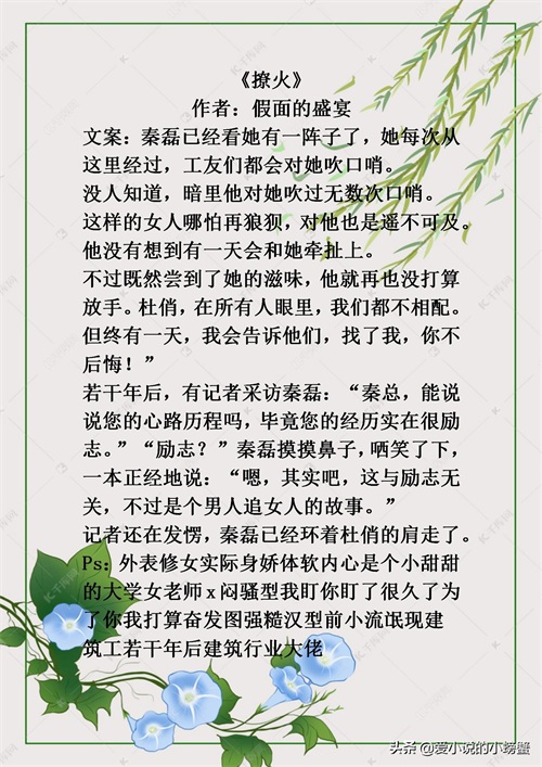 今天给大家推荐一些男主禁欲闷骚的文啊!