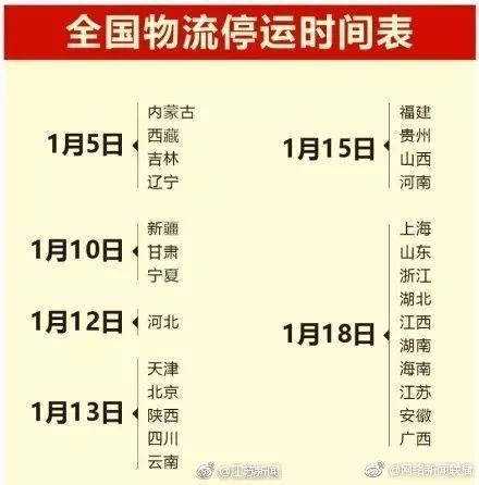 【2019年快递停运时间表出炉?假的,国家物流部不存在!】2月4日过年,你是不是已经开始准备年货了?近日一则“1月5日起全国物流将停运”的消息在网上流传甚广,而中国互联网联合辟谣平台发布辟谣文章:该通知纯属虚构,文中的“国家物流部”根本不存在!