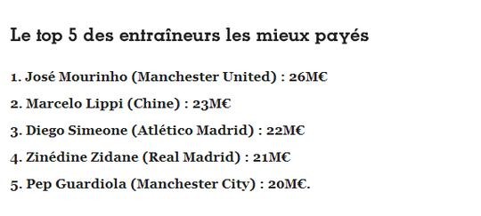 这一榜单并非是教练的“死工资”,而是包括其工资总收入、奖金还有商业广告收入。曼联队的葡萄牙人穆里尼奥,以2600万欧元占据了榜单首位。在马德里竞技执教的阿根廷人西蒙尼以2200万欧元列第三,执教皇家马德里的齐达内2100万欧元排名第四,刚刚率领曼城队锁定本赛季英超冠军的瓜迪奥拉则以2000万欧元位列第五。里皮作为中国国家队主帅,以2300万欧元的年薪排名第二,也就是说,里皮从2016年10月到现在,里皮已经从足协拿走了2.7亿人民币的年薪。