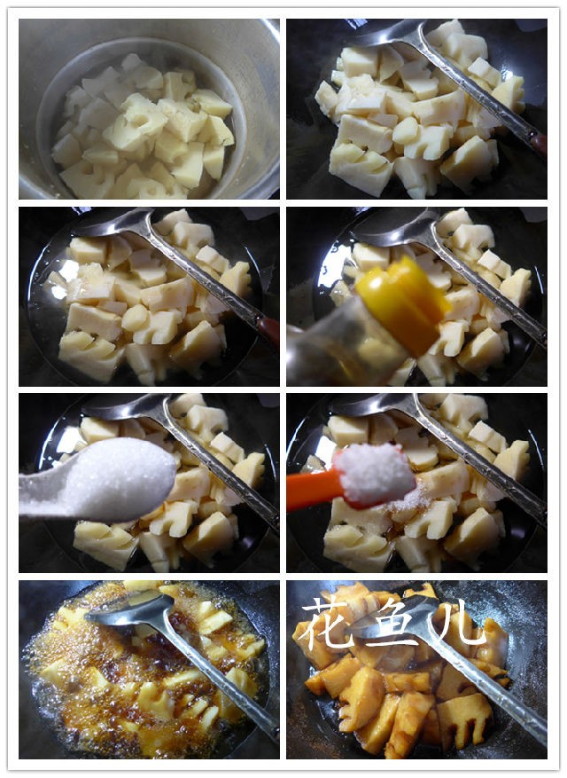 (4)烧锅倒油烧热,下入煮好的毛笋头,加入汤汁。