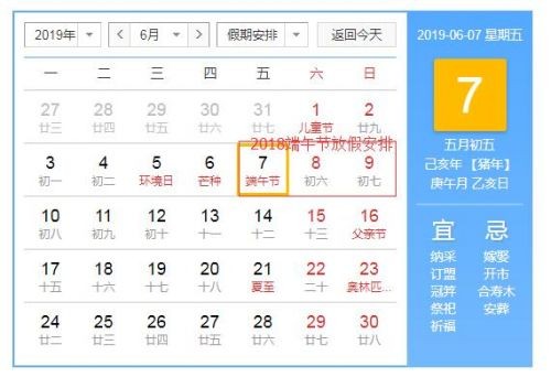 2019年端午节怎么放假?2019端午放假安排时间表