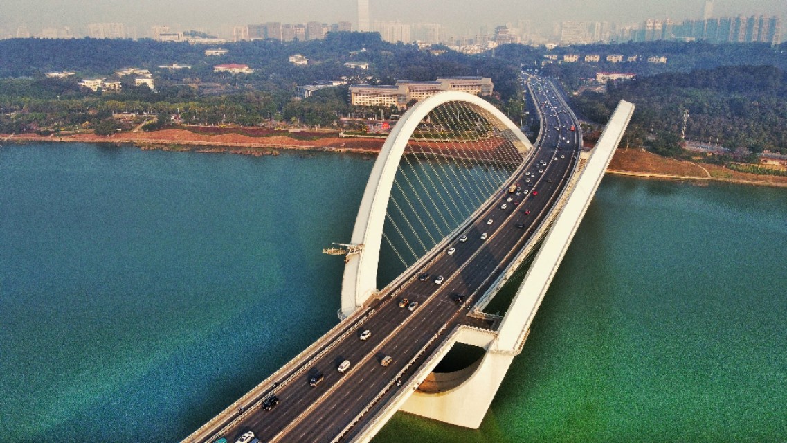 南宁市是广西首府。一条蜿蜒曲折的江水——邕江穿城而过,江上有不少大桥横跨南北,成为交通大动脉。桥梁设计也凸显了这座南方绿城的特点,兼容并蓄。每一座桥都有它的设计内涵。而南宁大桥,就是一座很有特色的标志性建筑。
