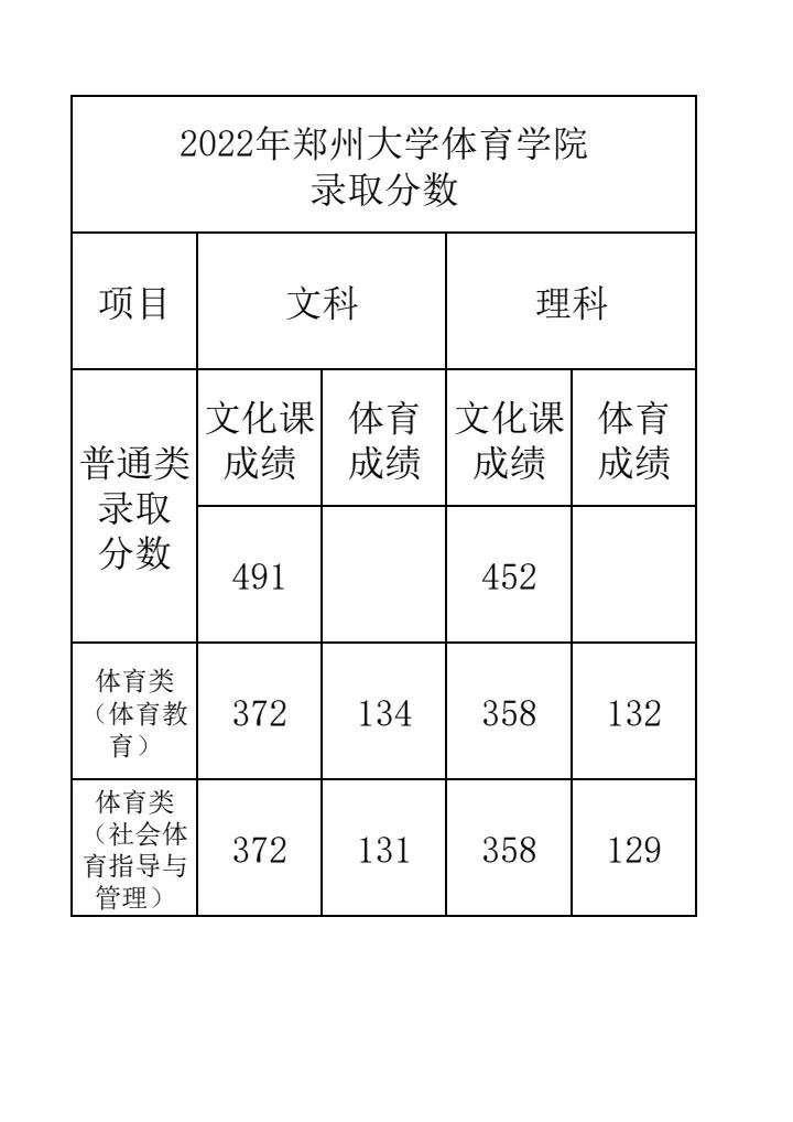 郑州大学体育学院是郑州大学的独立学院,隶属于河南省体育局,是河南唯一的体育类本科院校。其中体育类专业最低录取分129-134之间,文化课最低录取分,文科372,理科358,过线即可。相比普通类文化课最低录取分数要低100-130分左右。高考体育类是有效的低分高就升学途径。