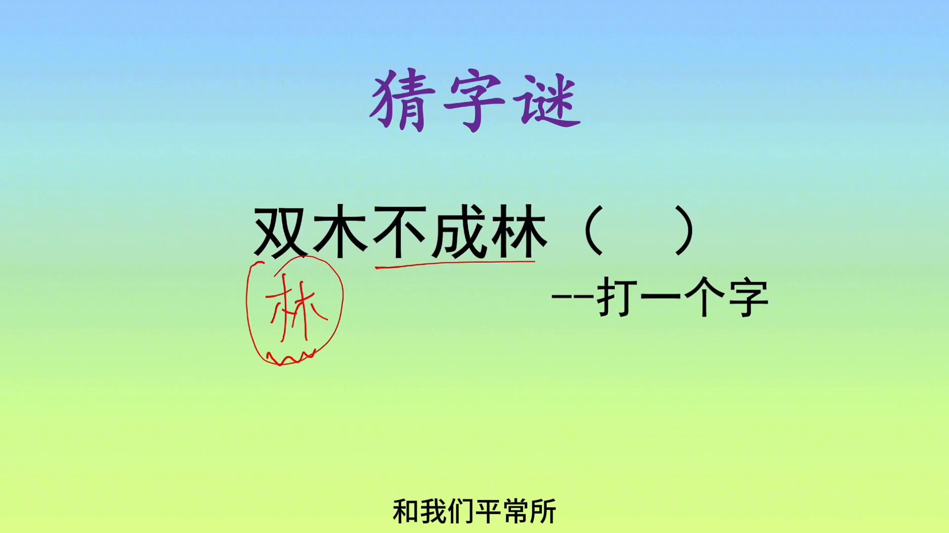 这个字是不是已经超出了你的认知范围?哈喽大家好,老师又来带大家一起学知识了。双木不成林,要猜一个字,双木也就是两个木。两个木一般情况下首先想到的就是这个林字,但是这个地方奇怪,就奇怪在它说不成林,也就是说不能够猜这个林字。所以这个字谜就有点超出大家的认知范围,和平常所了解的不一样。