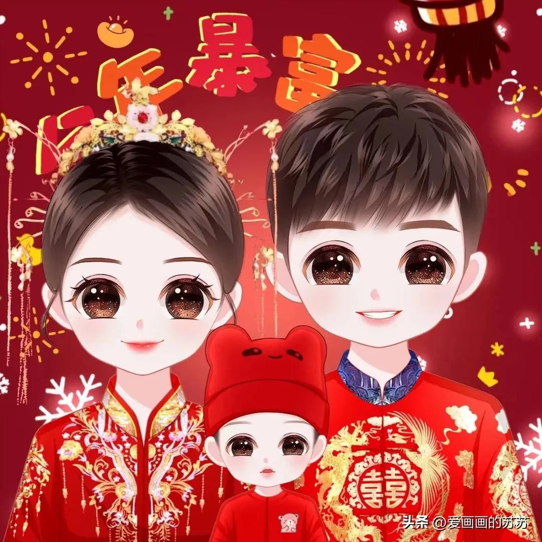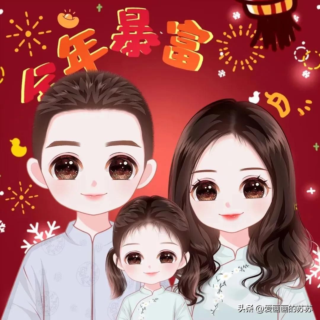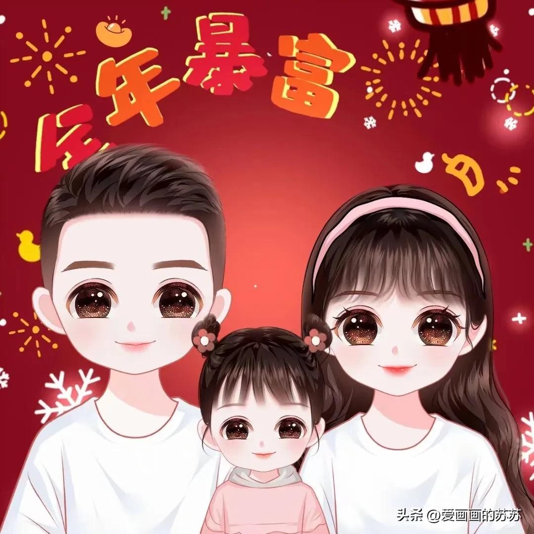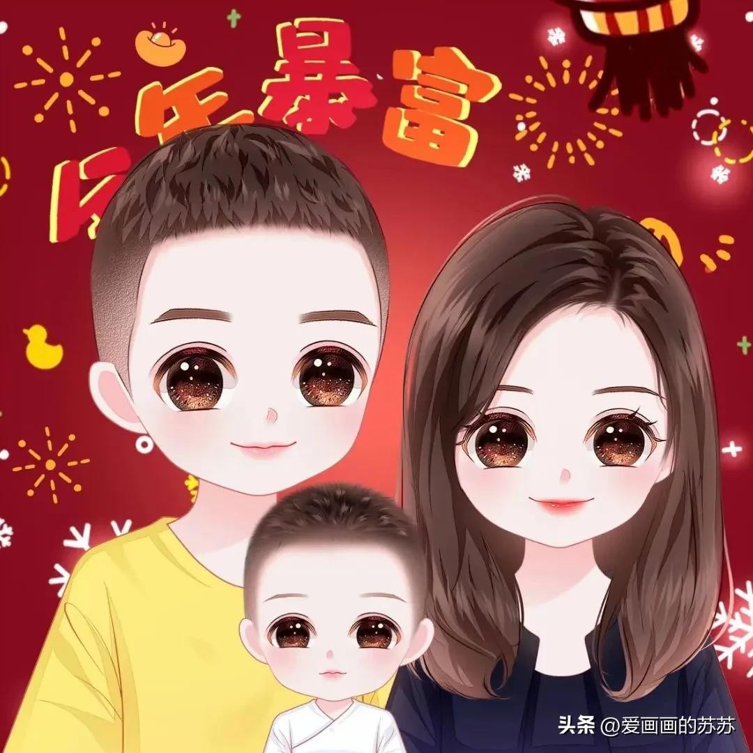 换个头像吧,一家3口的卡通全家福头像,满满的都是爱