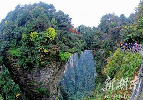 “天下第一桥”是一座天然石桥,位于张家界武陵源袁家界景区。