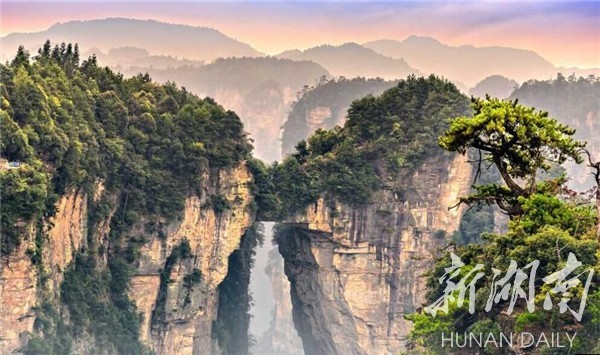 大自然的鬼斧神工,把东西两峰连接,桥上苍松挺拔,桥下云雾荡漾,万丈深渊,是张家界风景一绝,是大自然的一个奇迹。