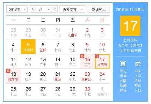 答:2018年的父亲节是在6月17日,农历五月初四,星期日。