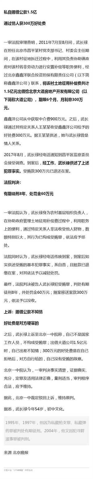 村支书私自挪借公款1.5亿,通过自己的情妇收300万好处费!此前被判过刑