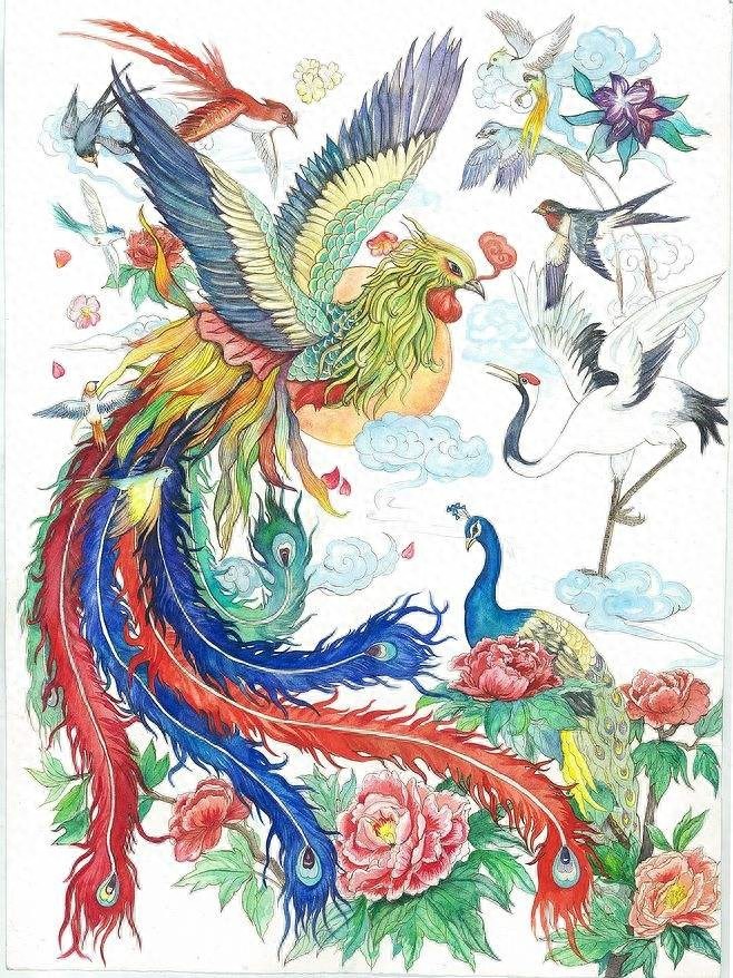 黄帝修身而达内圣,化天下而成外王,是古代“内圣外王”的代表,传说其继位之时,瑞彩纷呈,祥云缭绕,凤凰来仪,百兽率舞。只是到了后世,盛世难现,凤凰难出,人们孽重福薄,战国又凶气凝空,凤,渐渐成为了传说,也不再显现人们的视野。当然与其一起消失的还有龙和麒麟。到了孔子之时,人们曾在西山捕获一直麒麟,孔子还在感叹,“麟啊,你生不逢时,现在不是你该出现的时候啊!”麒麟上古之时一般是独角,但是现在的麒麟雕塑与画作都作双角。