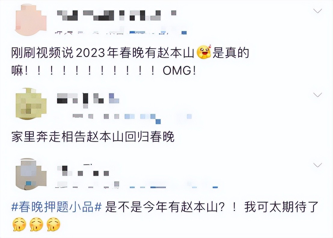 不少网友得知赵本山回归春晚舞台的消息之后极为激动,纷纷表示自己等待了多年终于等到赵本山登台,还有网友表示已经有8、9年不看春晚了,如果消息是真的那么2023年的春晚他必定是要看的。