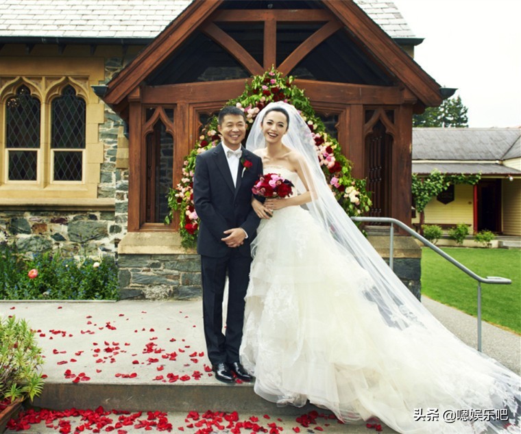姚晨:平口抹胸设计,裙身贴满蕾丝,丝绸腰带轻锁细腰,显出完美身段,裙摆宽大,是非常华丽又唯美的婚纱。