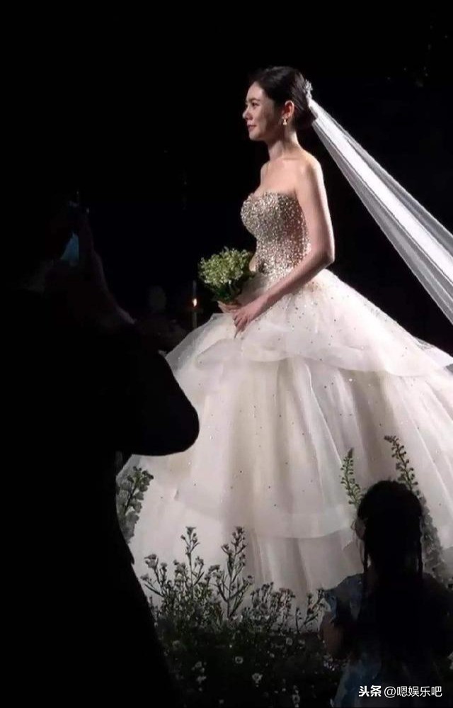 女星的抹胸式婚纱,秋瓷炫温婉娴静,戚薇俏皮温柔