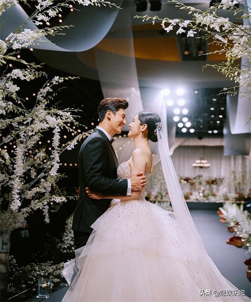秋瓷炫:抹胸款的设计,婚纱上半身满满的是亮晶晶的水钻,非常的耀眼;裙摆则是一层层的类似蛋糕裙的设计,层层薄纱轻盈,仙气飘飘,整体看起来非常的温婉娴静和美丽。