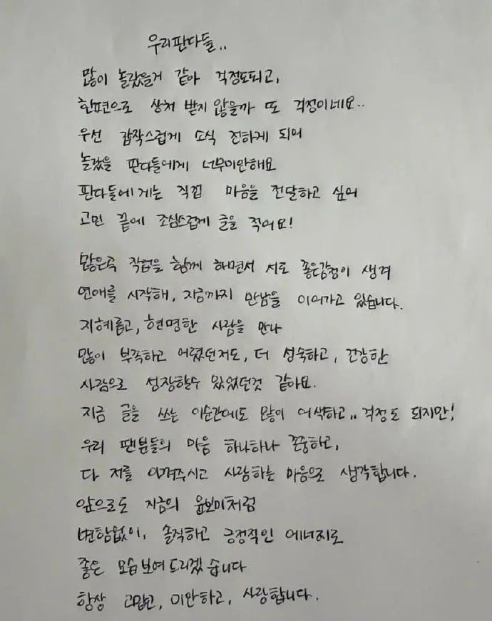 随后,Apink尹普美上传手写信,承认恋情。