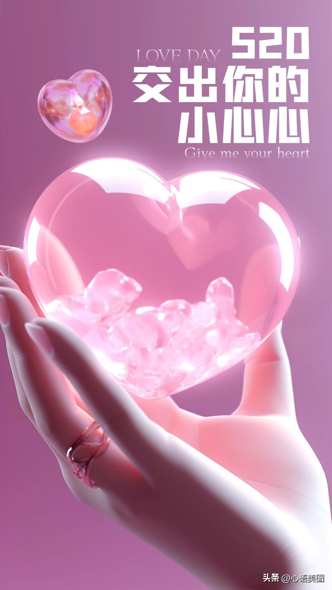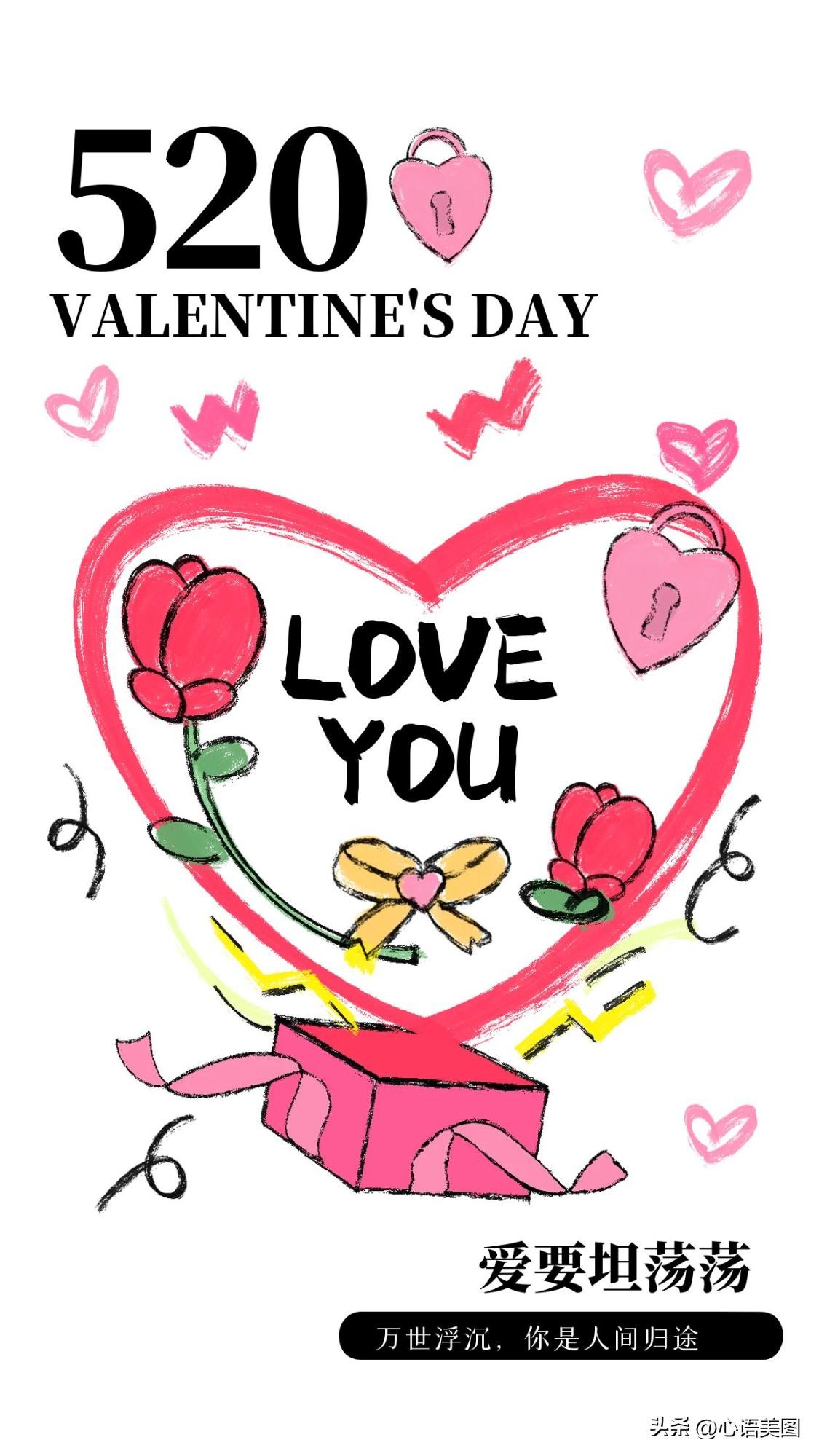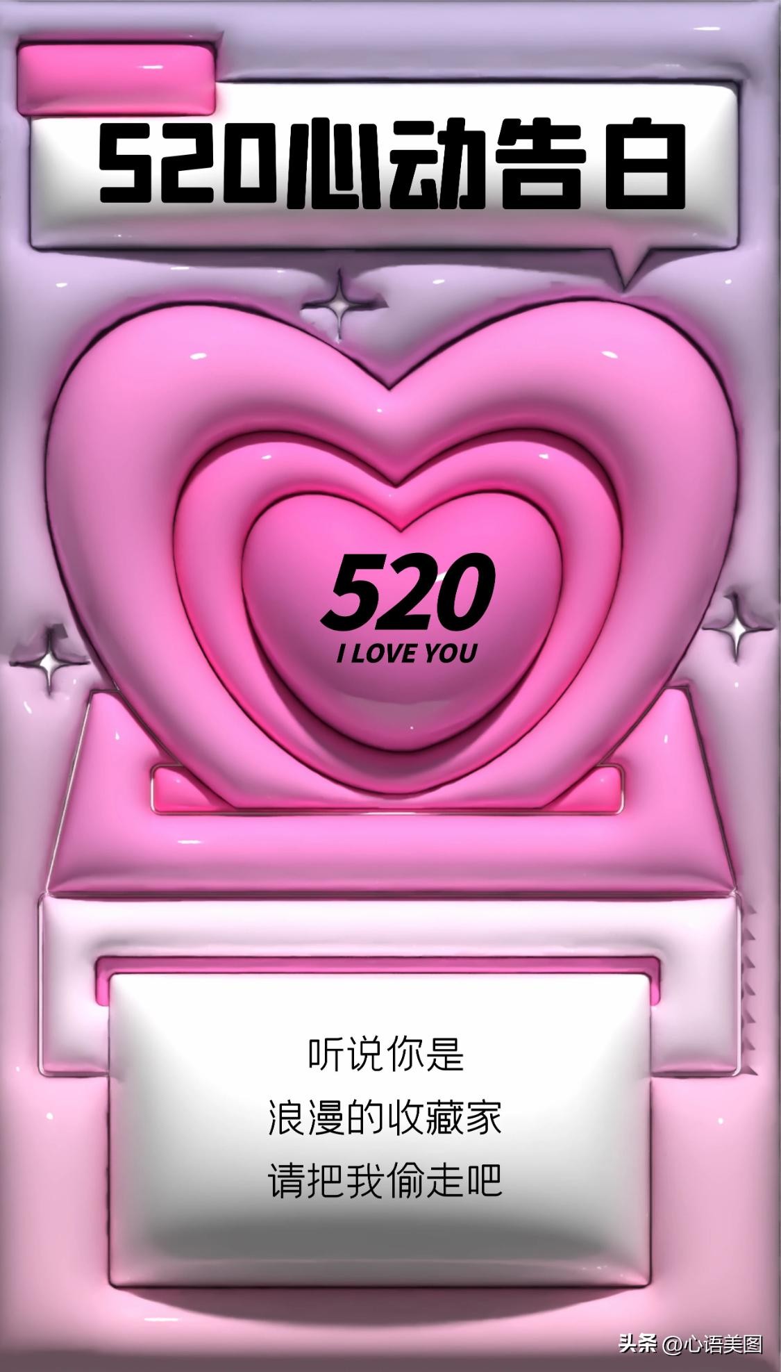 送你一颗开心,收获一颗欢心;送你一颗细心,收获一颗贴心;送你一颗真心,收获一颗芳心。520我爱你,我要送你一颗不变心,收获一颗幸福心!
