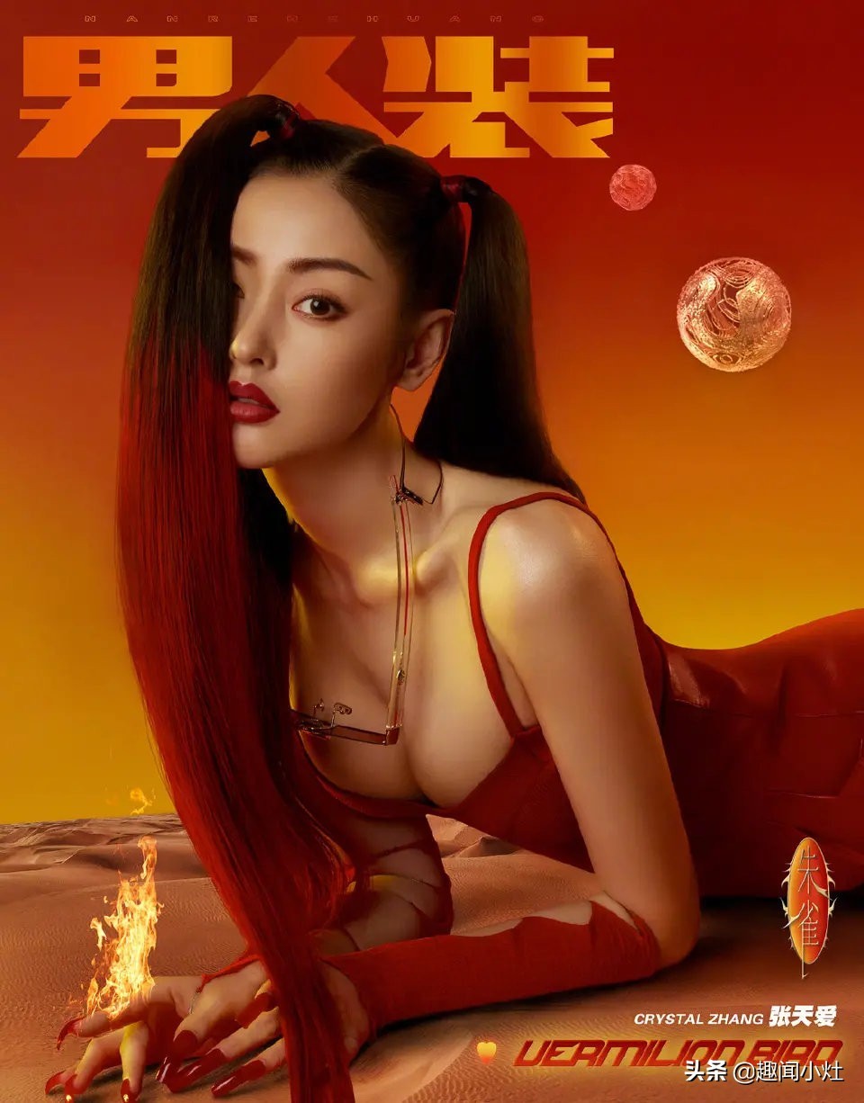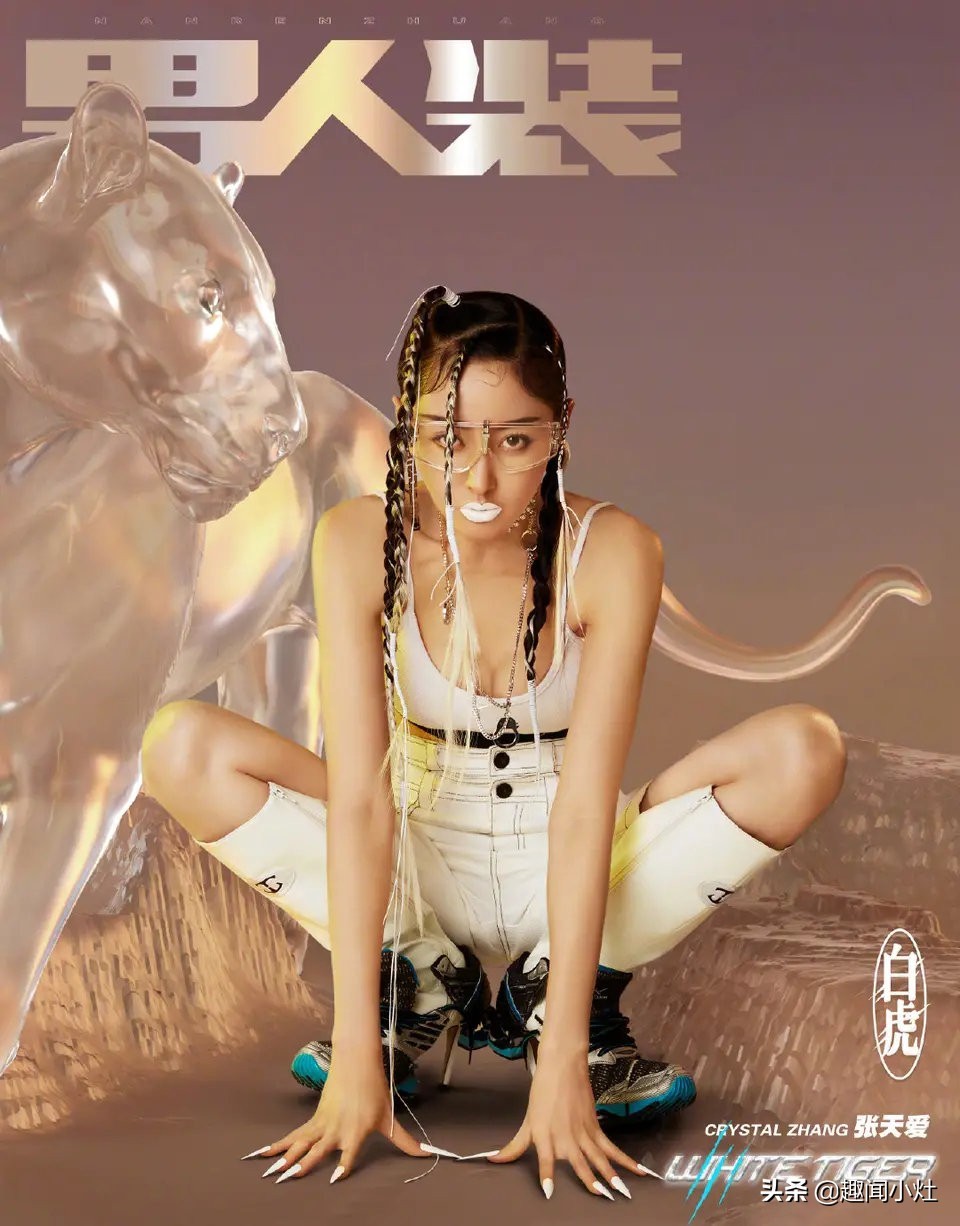 张天爱《男人装》杂志封面红青白黑四种造型,性感帅气!