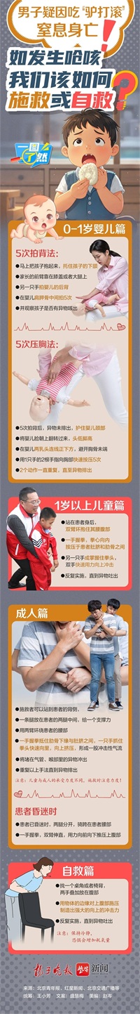 一图了然 | 男子疑因吃“驴打滚”窒息身亡!如发生呛咳,我们该如何施救或自救?