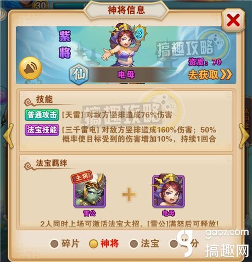 2人同时上场可激活法宝大招,【雷公】满怒后可释放!