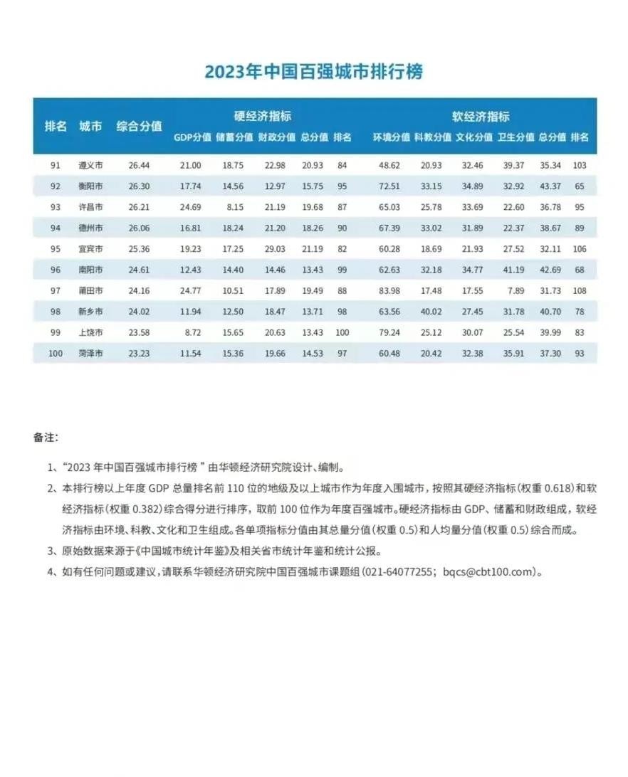 2023年中国百强城市排行榜发布:江西5个城市上榜