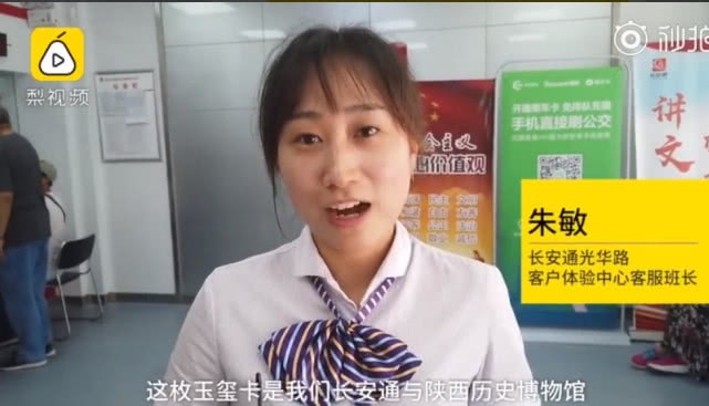 据梨视频拍客中心拍客:“一手video”在《梨视频》上发布视频爆料,5月25日,西安推出玉玺形状的长安通卡,市民可用它乘公交地铁。