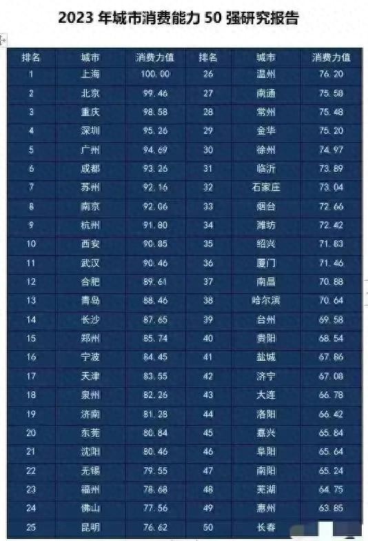 国内主要城市消费能力排名,广州领先成都,重庆比武汉有潜力