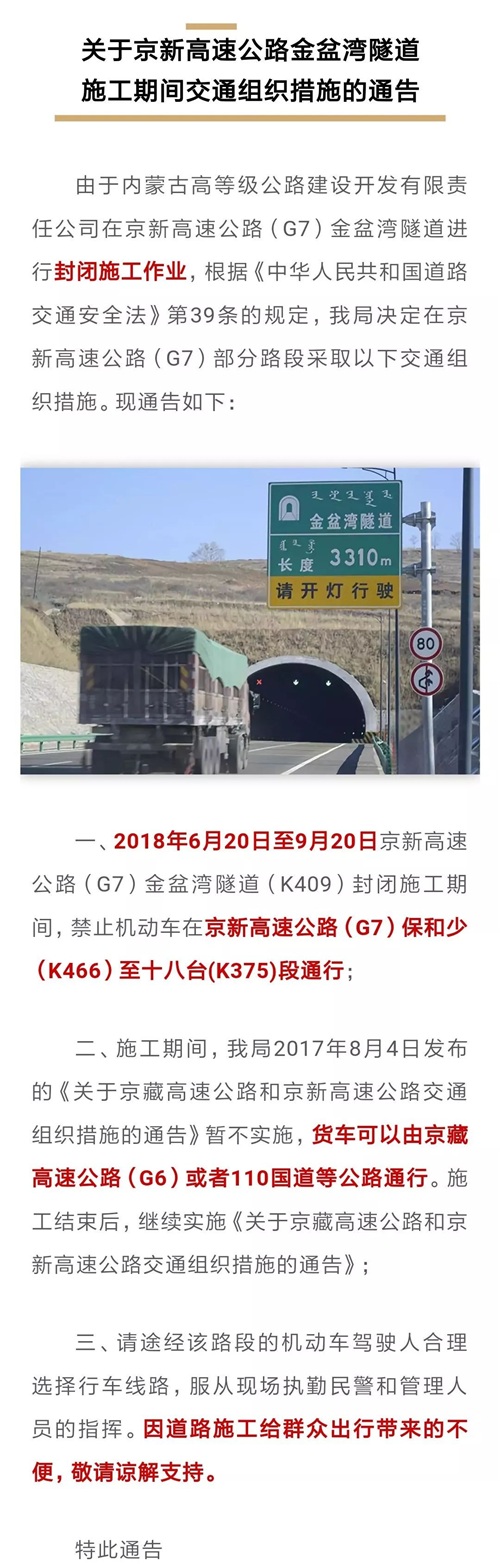 G7京新高速公路部分路段将封闭施工,请提前规划路线!