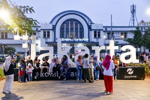 11月2日,在印度尼西亚雅加达,人们在雅加达城火车站前合影。 新华社记者 徐钦 摄