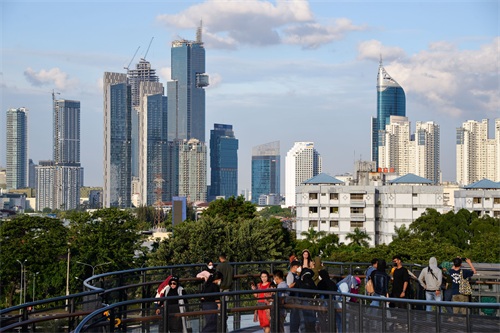 2022年1月23日,人们在印度尼西亚雅加达史纳延公园的空中步道欣赏城市风光。 新华社记者 徐钦 摄