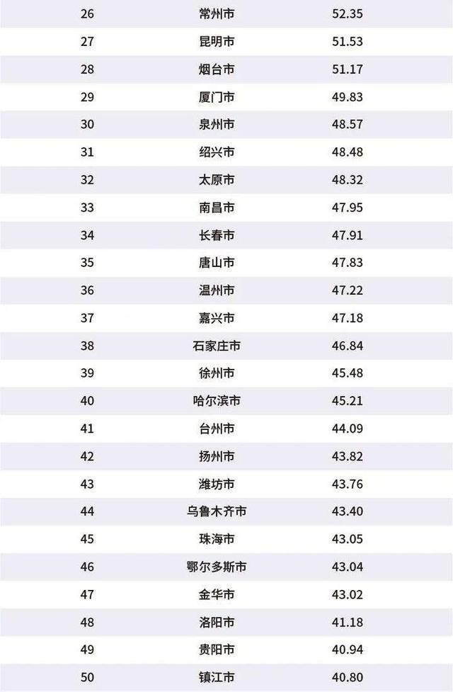 至于接下来的排名中,其实并没有什么太大的意外,只是重庆竟然排在了南京之后,武汉之后,这有一点意外。还有就是天津作为直辖市竟排在了第11名。这一点也是比较意外的。不知道对于这样的排名你有什么想说的吗?