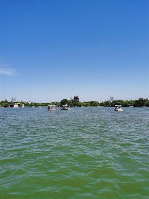 和众多城市名湖一样,大明湖也采取免门票还景于民的政策,沿湖亭台楼阁众多,游船星星点点,远方高楼林立,集自然风光、历史底蕴于一身,有了大明湖,济南立马有北方缺乏水所不具备的城市气质,有江南水乡的氛围。