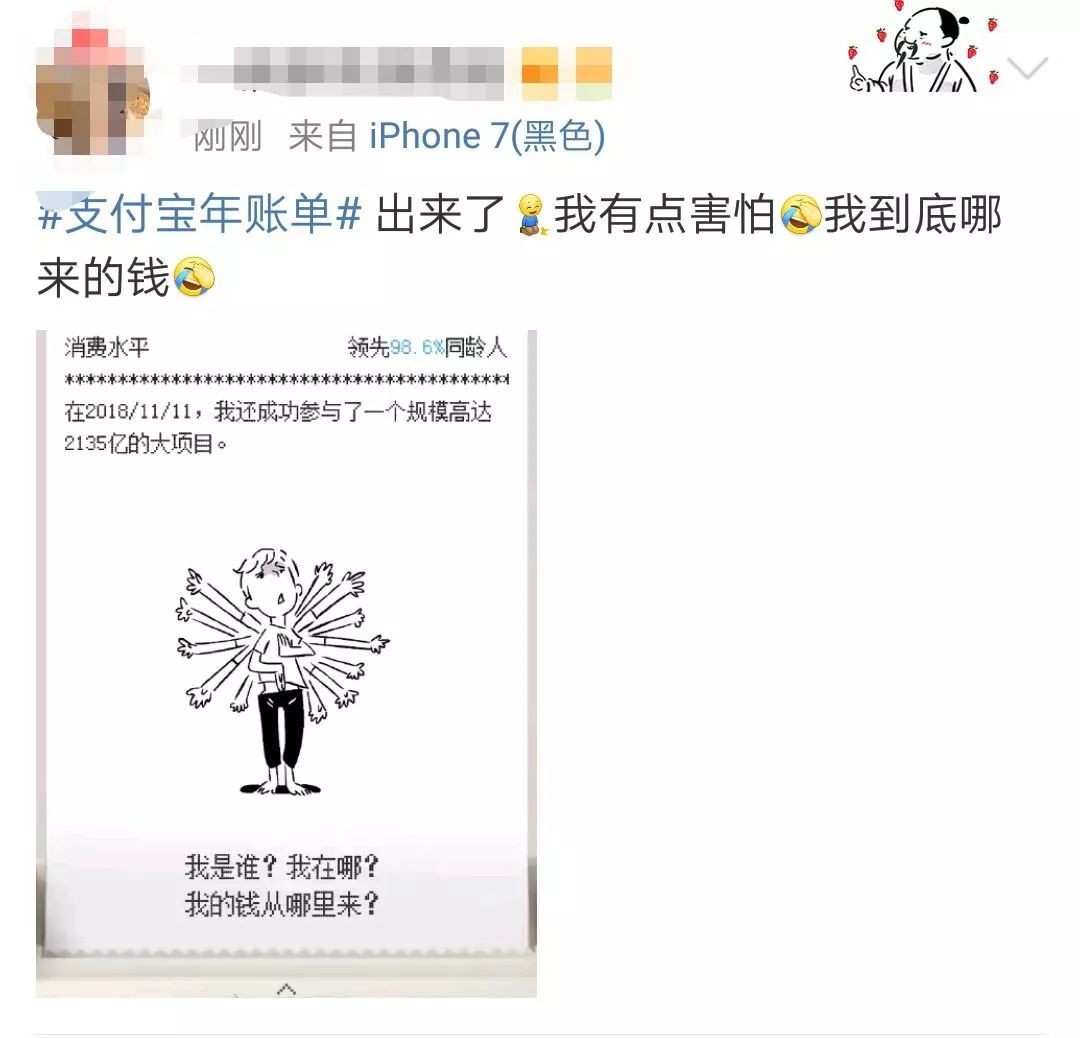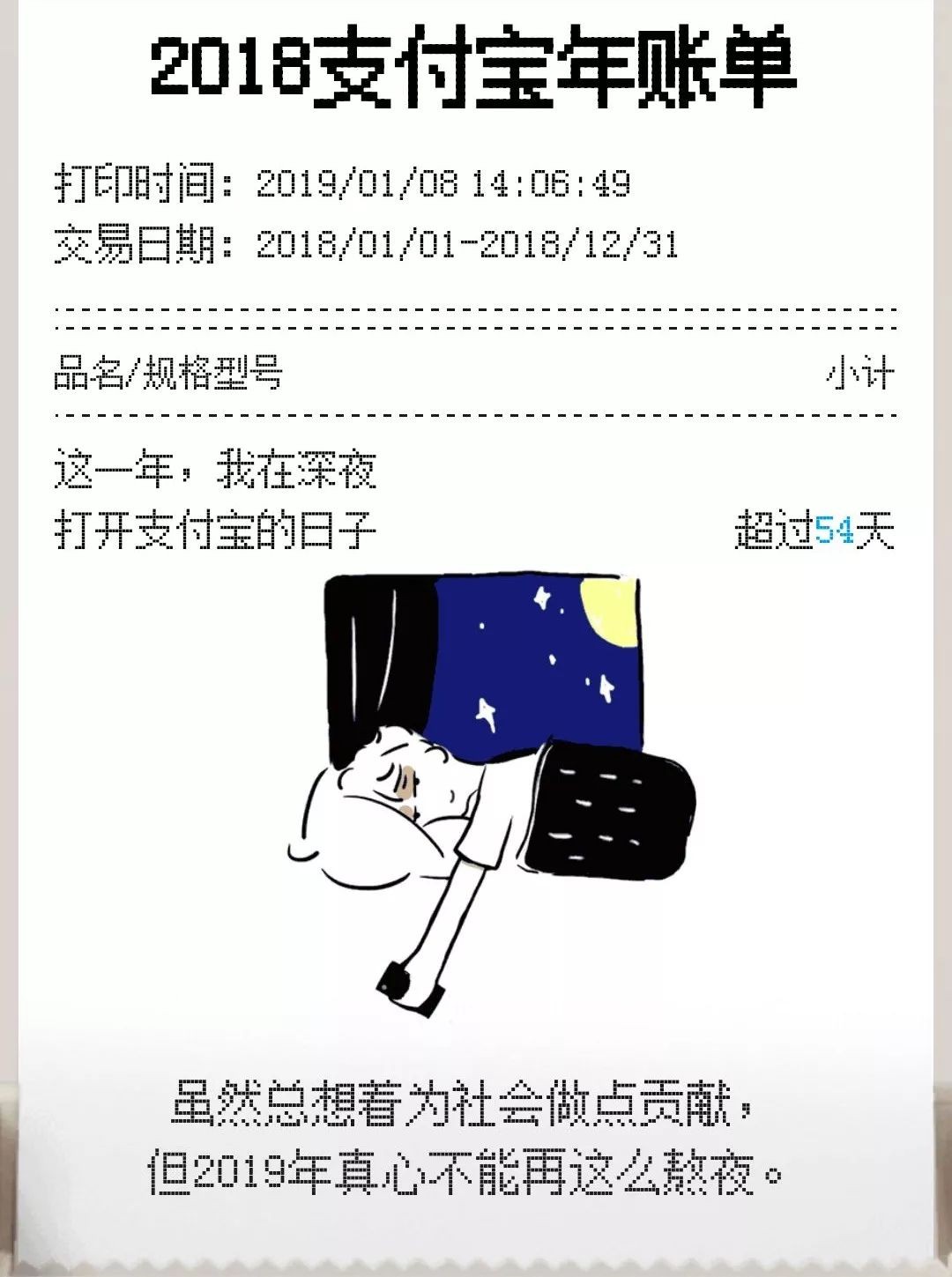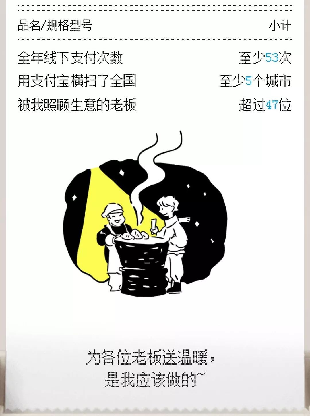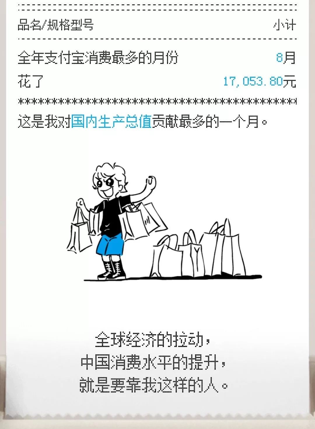今年的支付宝账单界面和以往不同,像是一个打印机打出来的购物小票。