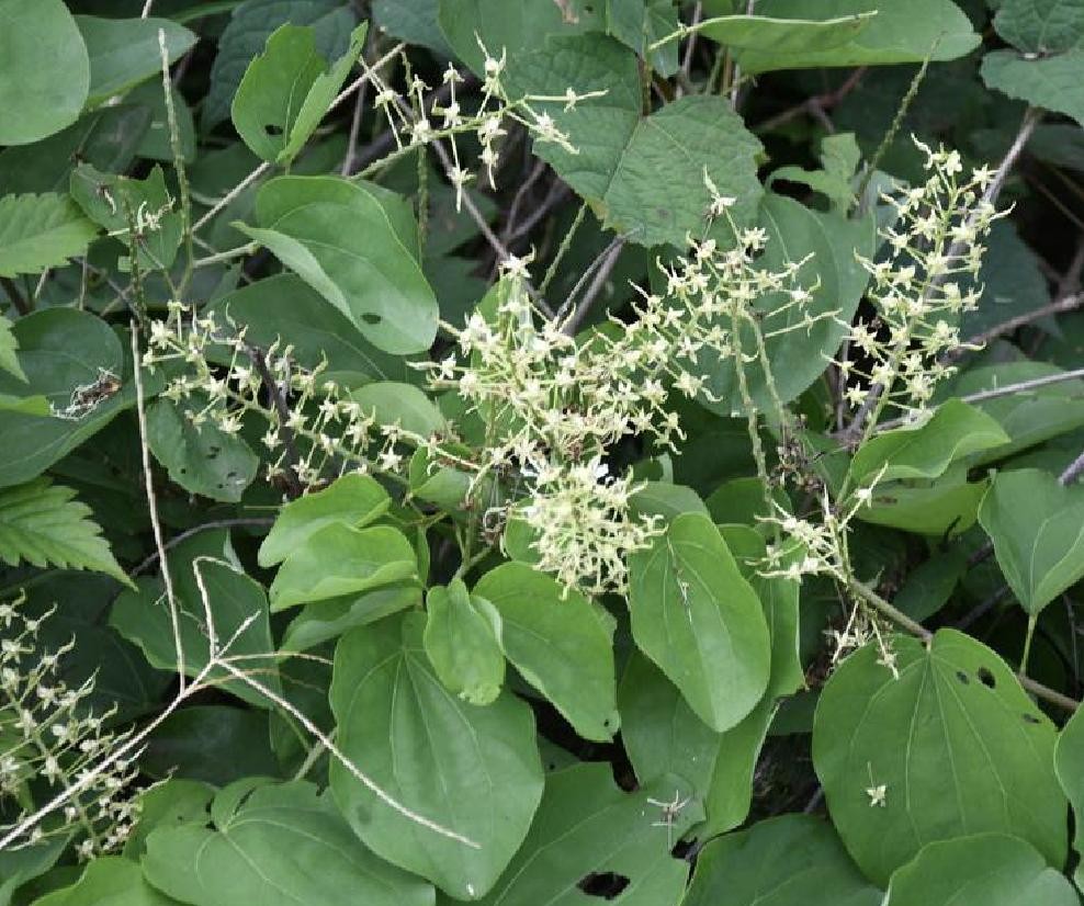 一是为常绿藤本植物,枝条上有细长卷须,小枝和花序有柔毛。