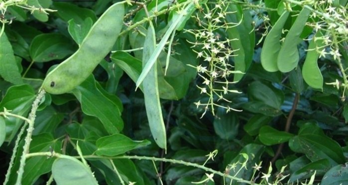 荚果倒卵状长圆形或带状,扁平,长7-12公分,果瓣革质,里面有种子2-5粒,7-12月果实成熟。